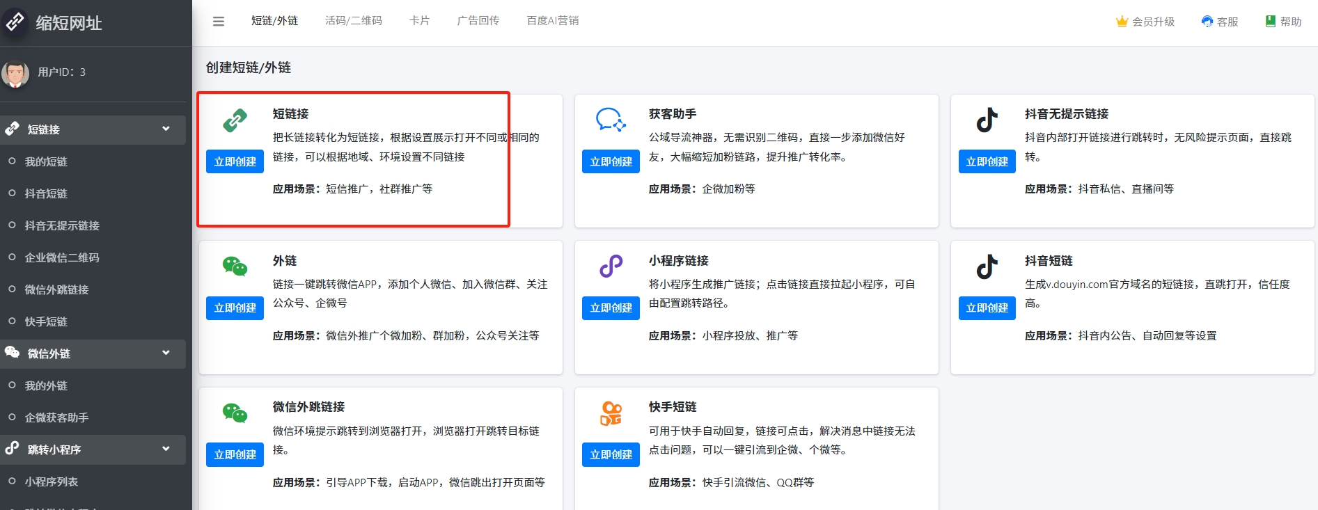 你可以为每个链接定制分流策略:设置不同的省份、浏览器类型、设备类型、环境类型;设置不同的跳转方式