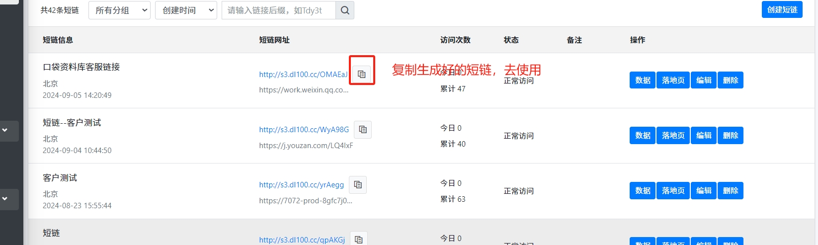 - 输入你的原始长连接,点击【确定】按钮生成短链