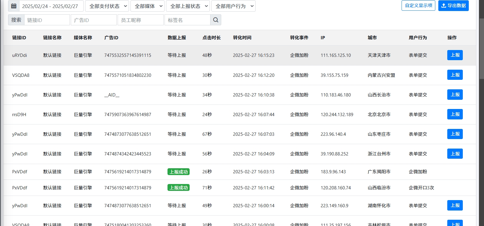 操作:可以手动回传某个广告点击,这样可以使广告迅速起量