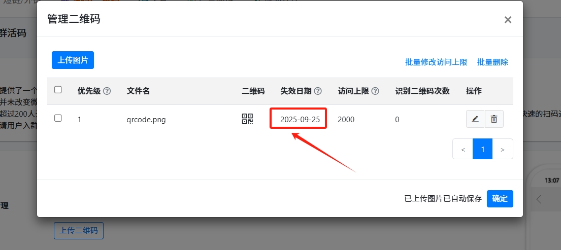- 解决方案:在活码的二维码管理里,上传新的未过期微信二维码;或者修改访问上限等