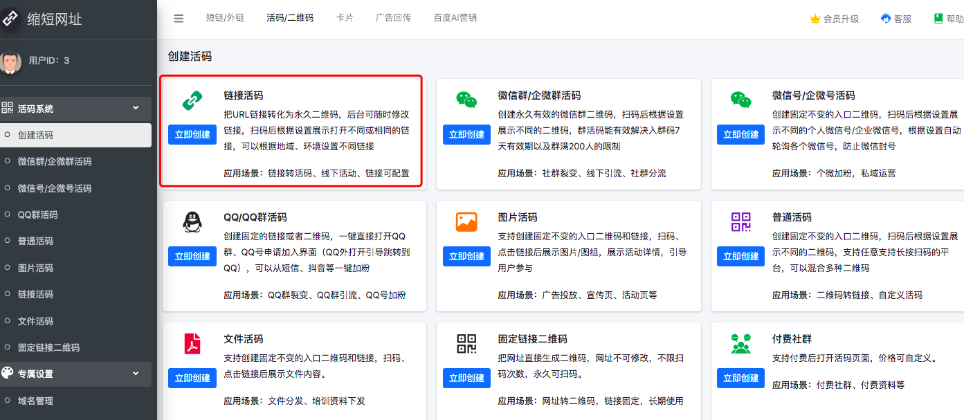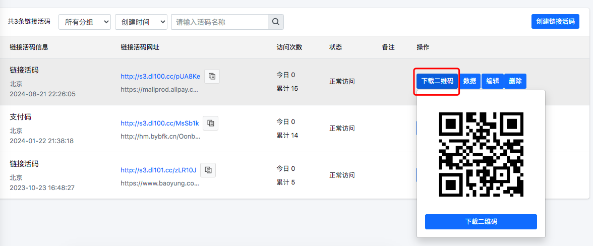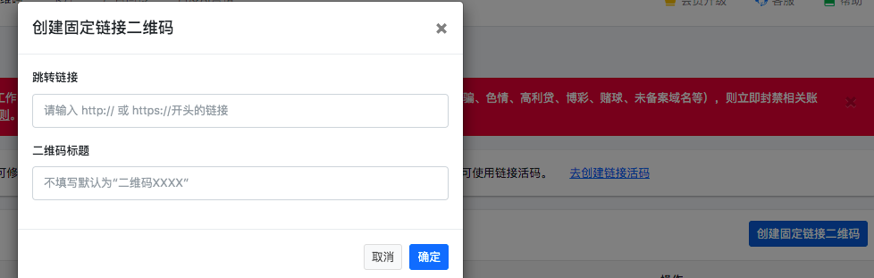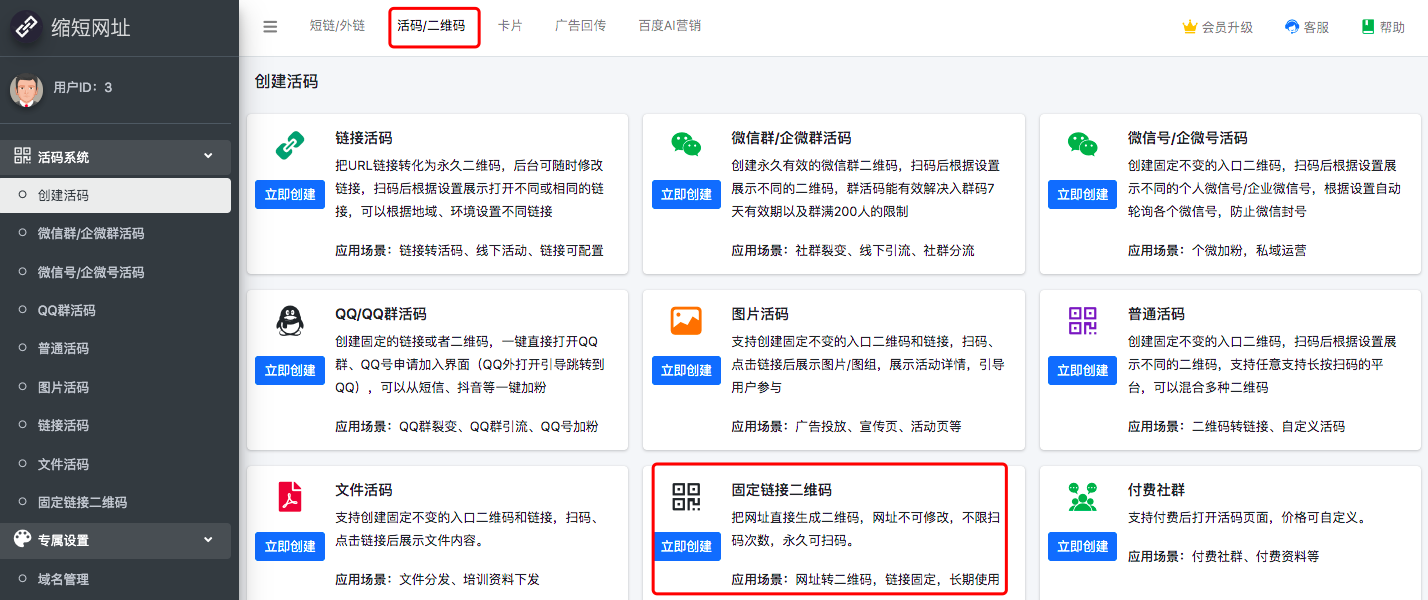 - 进入管理后台->活码/二维码->固定链接二维码/li>