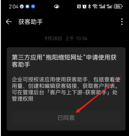 - 在企微APP中点击同意授权