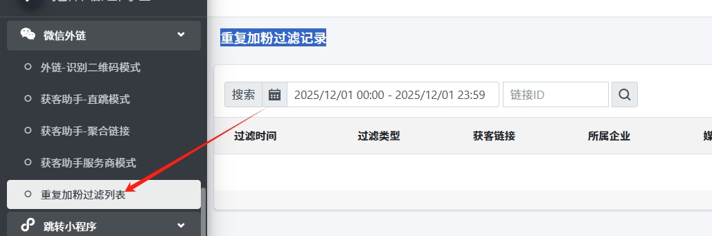 去重列表,可以在【重复加粉过滤记录】中查看